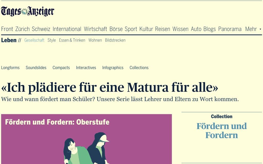 Stellungnahme zum Interview mit Andreas Pfister im Tages-Anzeiger vom 9. März 2017: „Ich plädiere für eine Matura für alle“.
