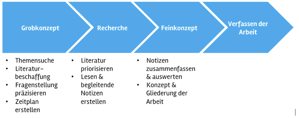 Die Erstellung einer wissenschaftlichen Arbeit lässt sich grob in vier Phasen einteilen: